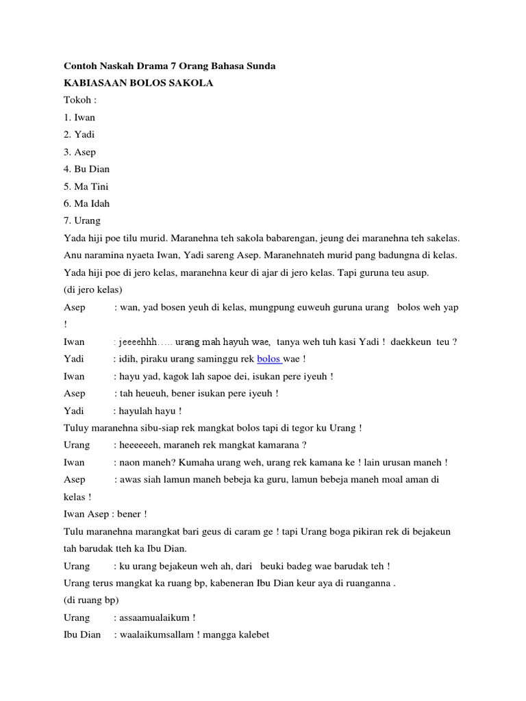 Terima kasih tentang artikel nya , semoga bermanfaat, kunjungi my blog kuliner indonesia. Contoh carpon bahasa sunda assalamualaikum wr wb terimakasih sudah berkunjung ke halaman blog ini. Inilah pembahasan selengkapnya mengenai contoh karangan bahasa sunda tentang kebersihan sekolah. Pada contoh percakapan atau paguneman berkaitan mengenai lingkungan kebersihan sekolah ini saya membuat 3 buah. Contoh artikel bahasa sunda tentang sakola. Contoh berita bahasa sunda tentang bencana alam pamiarsa sadayana nagara indonesia nuju kenging musibah saentosna ntb ayeuna kota palu anu kenging musibah gempa. Dan cerita moral kebaikan tentang menolong seseorang meskipun kita juga sedang dalam kesusahan. Bener, ngan aya hiji, eta oge geus ruksak. Contoh artikel bahasa sunda tentang pendidikan yang singkat. Contoh artikel bahasa sunda tentang sakola / november 29, 2020 3 min read. Bagi kalian yang langsung ingin mencari biantara dengan tema tertentu, silahkan langsung scroll ke sub judul. Contoh bewara bahasa sunda tentang kegiatan pramuka. Itu semua ditulis dalam bahasa sunda lengkap dengan terjemahan bahasa indonesia.